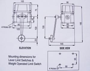 The contact operate / change-over at 90° rotations. The limit switch has 4 position 0°-90° -180° -170° operations, used for single / two speed motor control. Control switch with 300mm road from 3 to 4 position with 2 or 4 contacts.