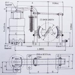 | Brake Model | Brake Drum Dia. Mm (D) | Brake Torque | Thruster Details | C | N | P | Q | Mass kg. | ||||
