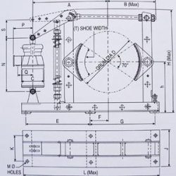 The shoe setting screws on both shoes are to be adjusted when brake is released. Both shoes must be set such that the clearance between the drum and the brake lining at the top & bottom corners of the shoes is equal.